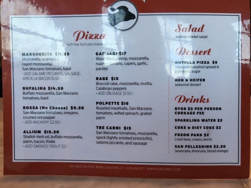 Bufalina, located in Guilford, CT, is a cozy Italian restaurant known for its delicious wood-fired pizzas. With a focus on using high-quality, authentic ingredients, Bufalina offers a variety of gourmet pizzas like broccoli rabe and sausage, pear and bacon, and margherita. Customers rave about the friendly owners, authentic Italian flavors, and ever-changing menu that keeps them coming back for more. The intimate setting with outdoor seating adds to the charm of this gem. Don't miss out on their special weekly pizza and be sure to order ahead as they tend to sell out quickly. Whether you're a fan of traditional flavors or looking for a gourmet twist on classic dishes, Bufalina has something for everyone to enjoy.